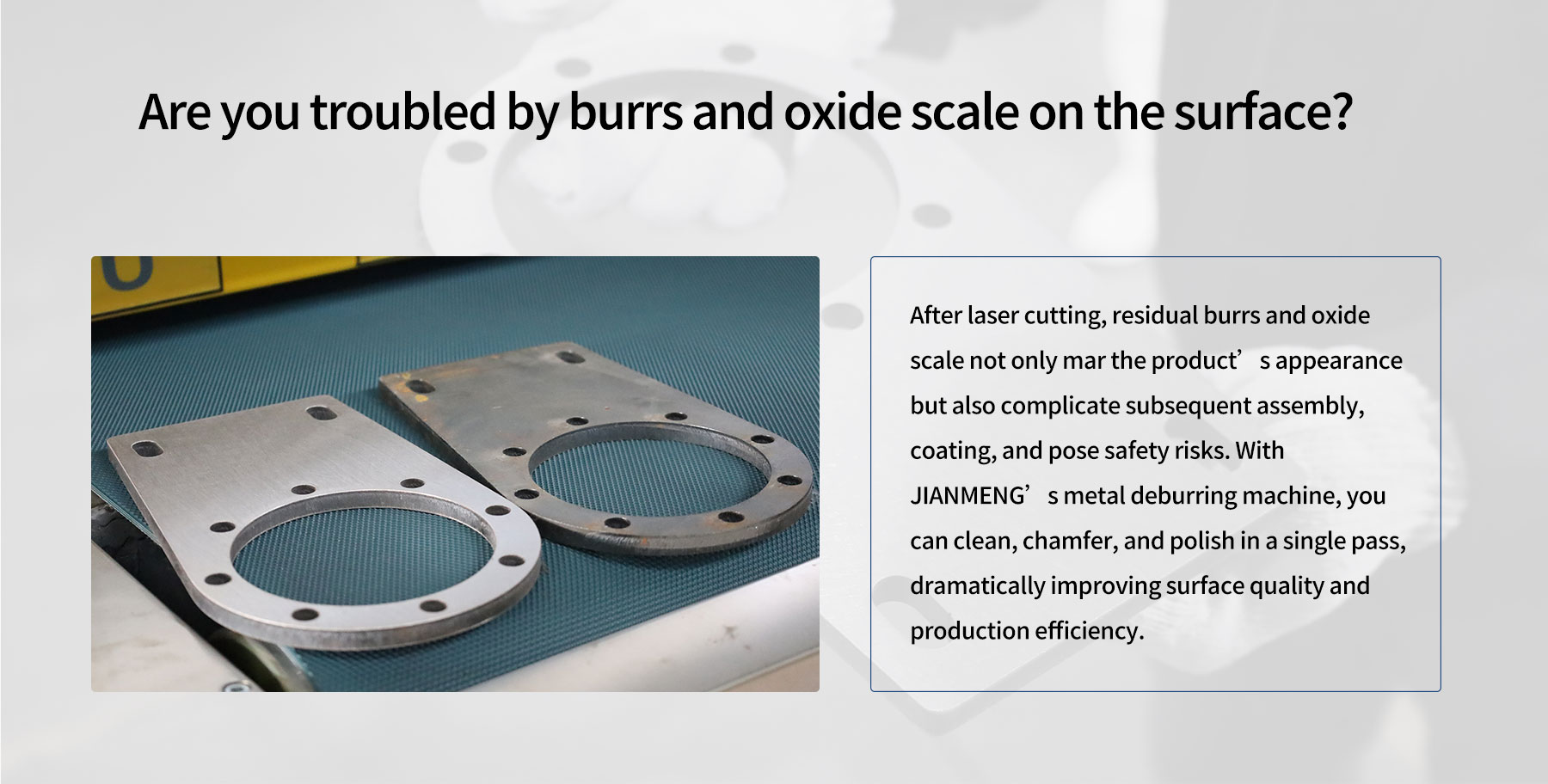 A JM é um fabricante líder especializado em máquinas de reversão de metal. A Metal Deburing Machine é um dispositivo industrial projetado especificamente para remover rebarbas, bordas afiadas e camadas de óxido de peças de aço de metal, placas de metal e peças de trabalho. A máquina de reversão de metal é amplamente utilizada em processamento de metal, fabricação de máquinas, componentes automotivos, estrutura de aço, construção naval e armários elétricos.
